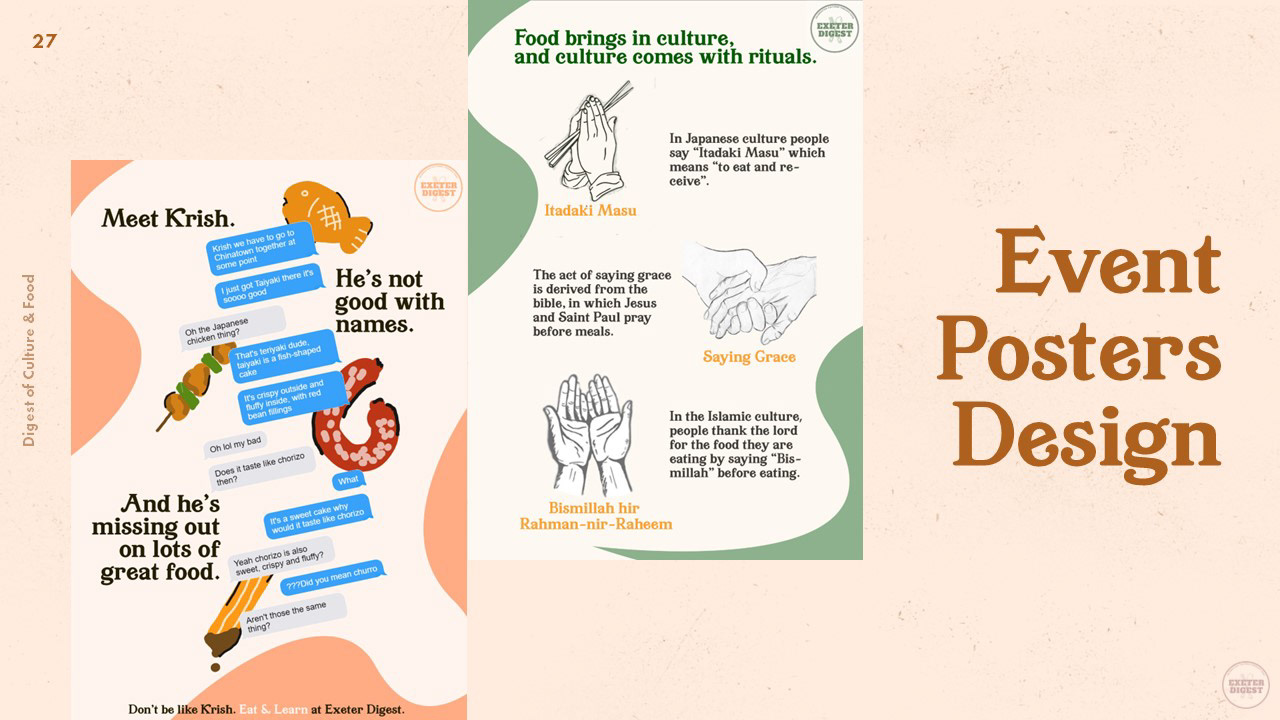 Exeter Digest is an international food & culture festival project that I'm currently working on with my coursemates. On top of being the project lead, I'm also responsible for the visual/branding of the festival.